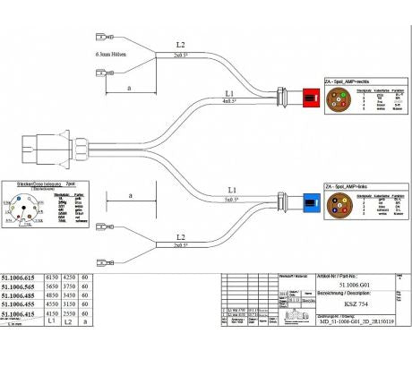 Kompletná kabeláž JOKON na prívesné vozíky so 7-pólovou zástrčkou. Celková dĺžka káblov 5,65 m. S vývodmi na pozičné svetlá  (...