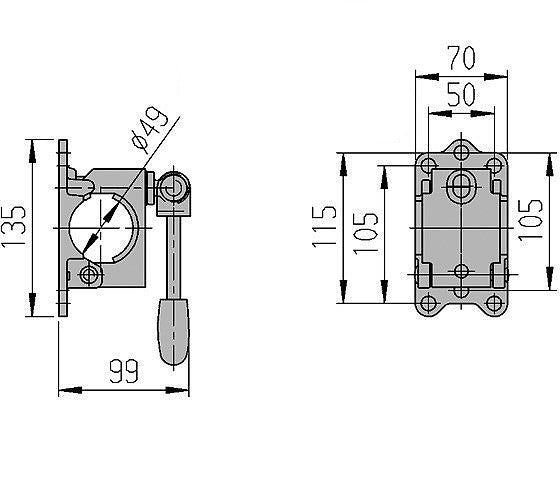 Liatinový držiak pre oporné kolesá a oporné nohy s priemerom tyče 48 mm s otočnou skrutkou.