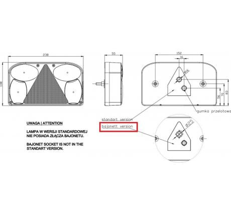 Koncové svetlo na prívesy. Napájanie svetla - 5 pin bajonet. Funkcie svetla : zadné koncové, brzdové, smerové, cúvacie, odrazka trojuholník,...