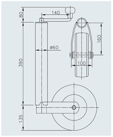 Pre upevnenie k prívesu je vhodný držiak oporného kolesa Simol 60 mm .
