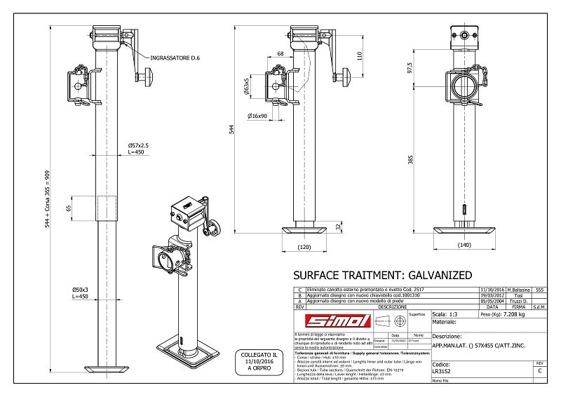 Oporná noha 1300kg LR3152 s kľukou dlhá sklopná