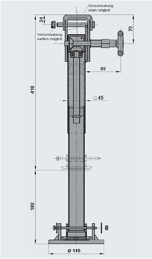 Oporná noha sklopná , otočná , 6 polôh nastavenia