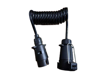 Predlžovací špirálový kábel s plastovou 7 pol.zástrčkou a 7 pol.káblovou zásuvkou .