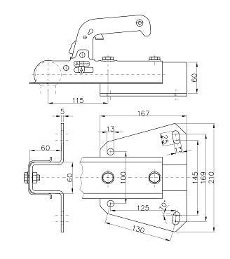 Prívesový klb s držiakom pre V - oje na nosnosť 1500 kg. zaťaženie 1500 kg ovládacia páka je opatrená poistkou a...