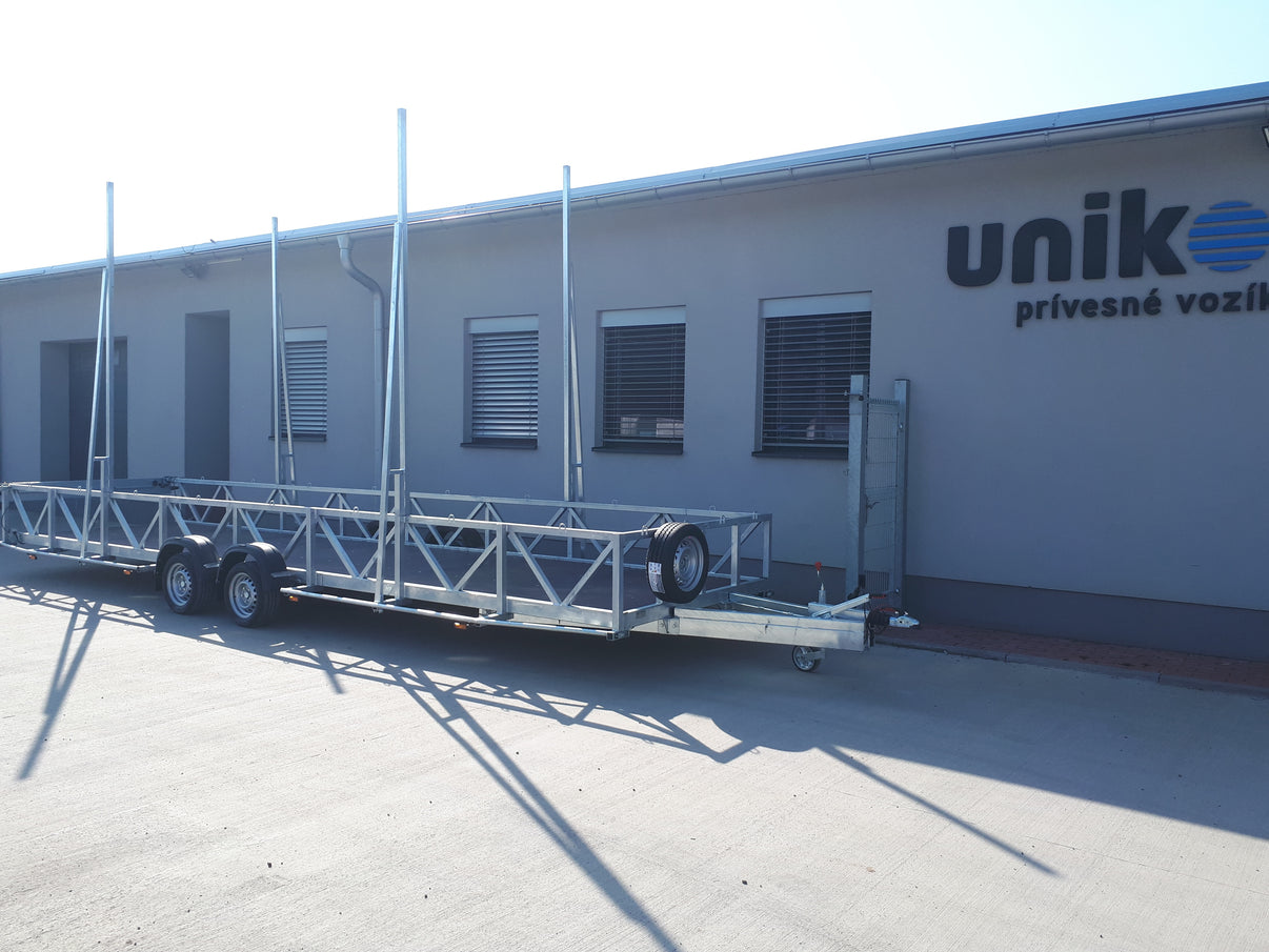 Špeciálny prívesný vozík na prevoz bazénov s kolesami vedľa ložnej plochy. Príves je osadený brzdovým systémom AL-KO . Bočnice sú z oceľových profilov , podlaha z vodovzdornej protišmykovej preglejky . Konštrukcia prívesu žiarovo zinkovaná čo dáva prívesu vysokú pevnosť a dlhú životnosť . Zadný panel svetiel je výsuvný 1000 mm alebo odoberací. Štandardne je príves vybavený nízkoprofilovými kolesami , aby bola dosiahnutá čo najnižšia výška ložnej plochy.